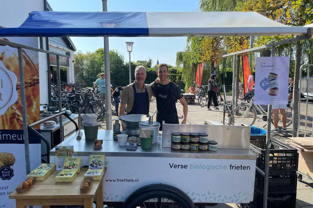 DAPP, bekend van de iconische Frietfiets, begon ooit gewoon met biologisch friet bakken. Simpel idee, grote liefde voor kwaliteit en herkomst. Maar wie goede friet serveert, weet één ding zeker: zonder goede saus ben je nergens. Vanuit die overtuiging groeide DAPP al snel uit tot een geliefd merk in Utrecht en Leiden en volgde de volgende logische stap. Eigen sauzen maken. Natuurlijk biologisch, natuurlijk met smaak.